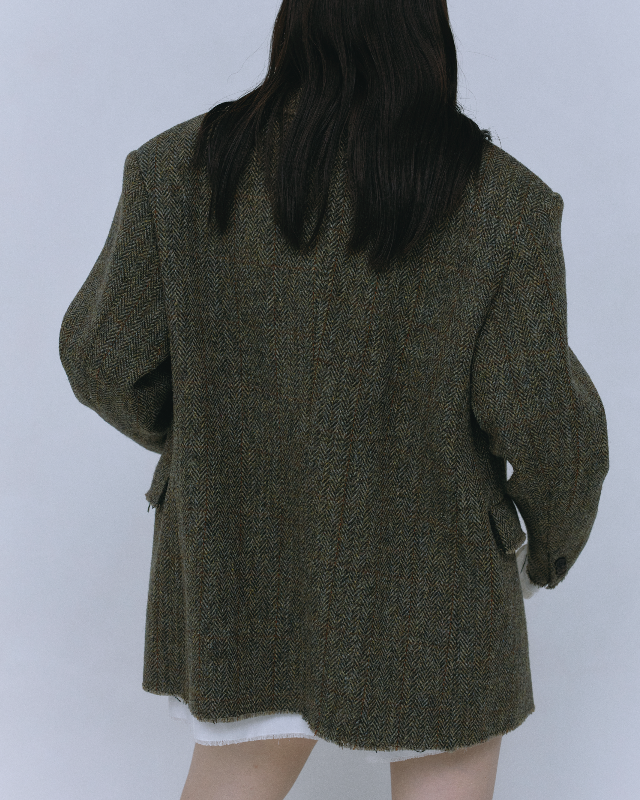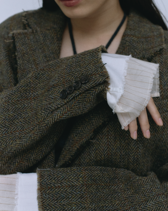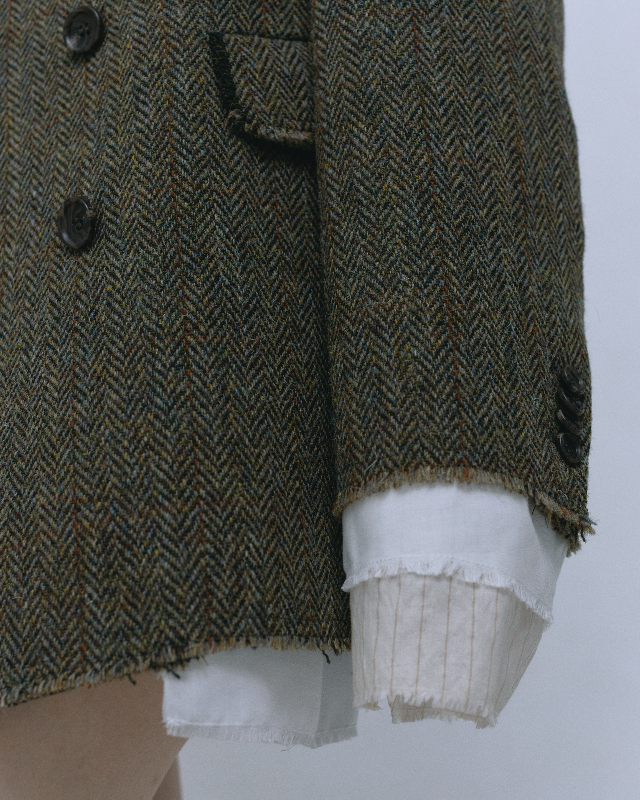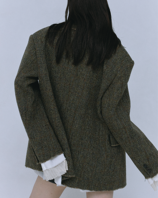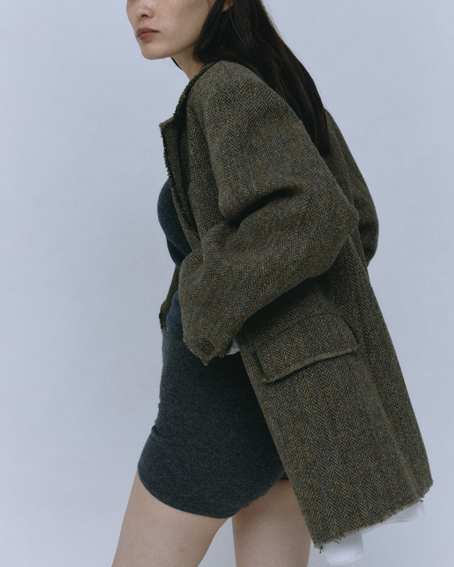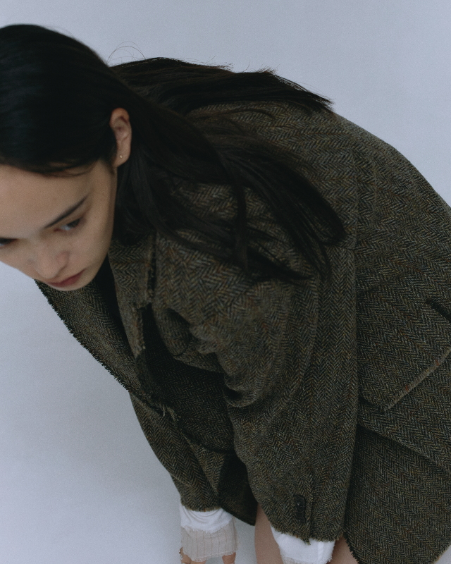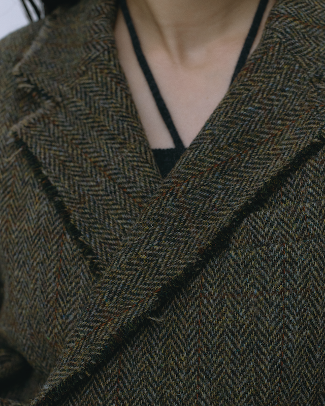 ハリスツイードを贅沢に使用し、クラシックな風格をまといながら、驚くほど軽やかに羽織れるジャケットに仕立てました。