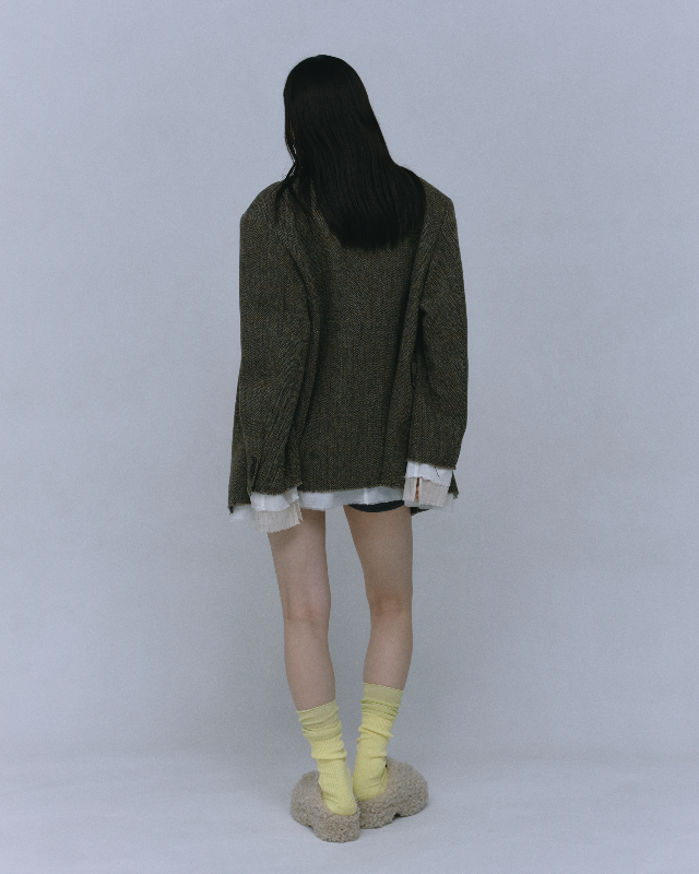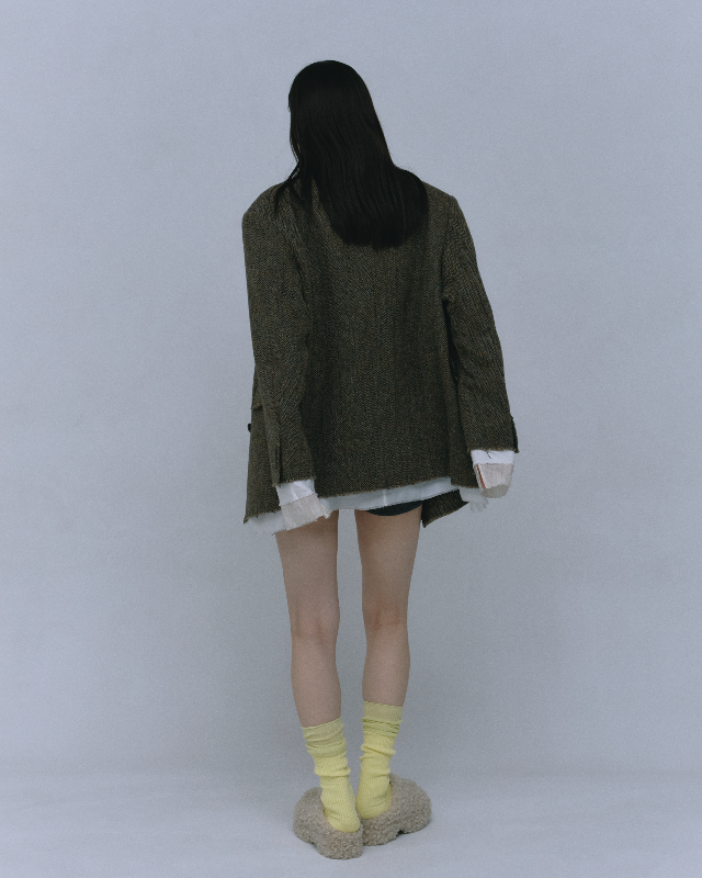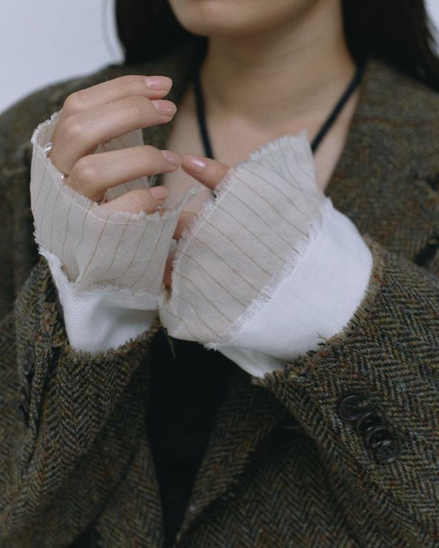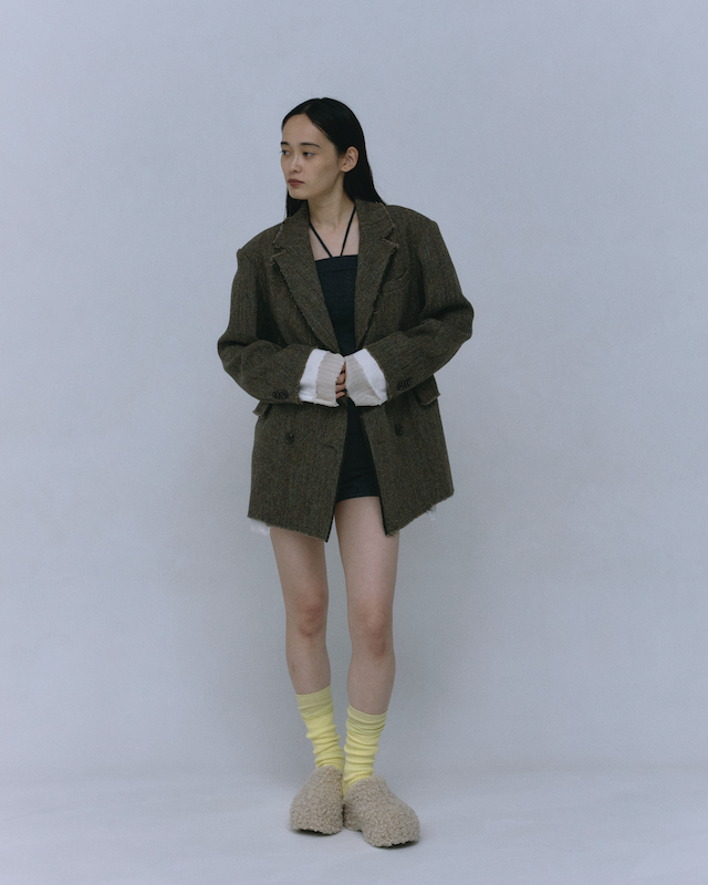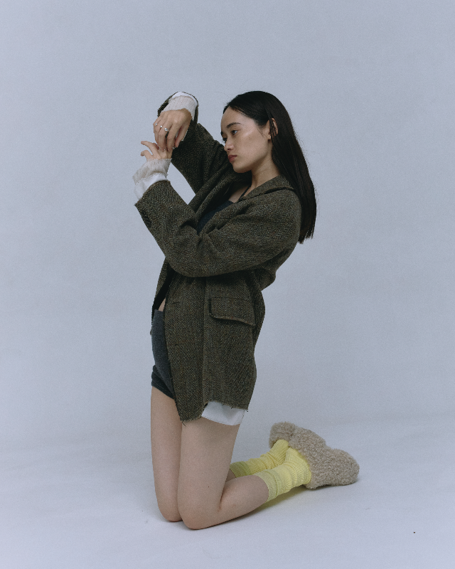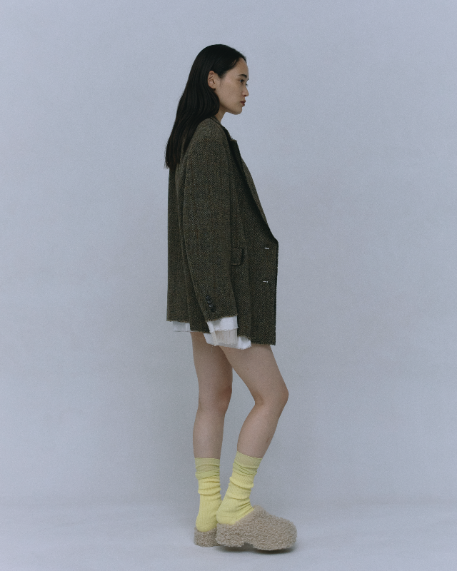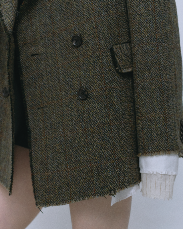 ハリスツイードを贅沢に使用し、クラシックな風格をまといながら、驚くほど軽やかに羽織れるジャケットに仕立てました。