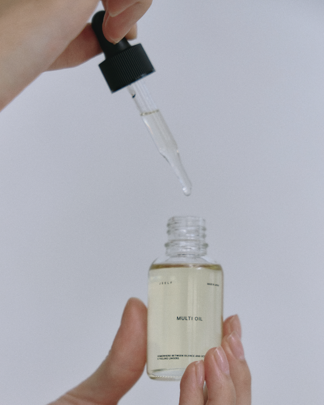 JSELFを纏う女性像をイメージし、ヘアへの使用をメインとした天然由来成分100%のマルチオイルが仕上がりました。
