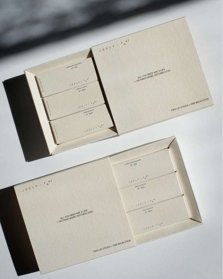JSELF × soel のクリア、ベージュ 、 レッドの3色セットがボックスタイプで登場。