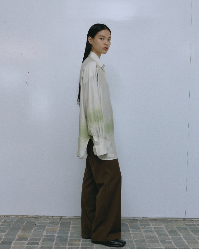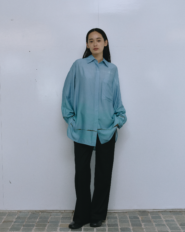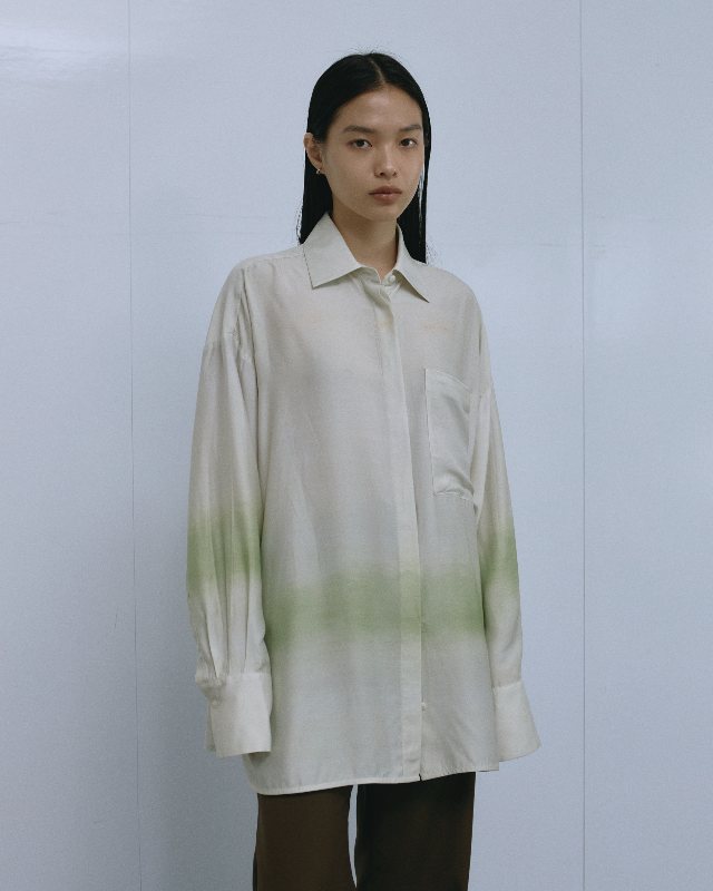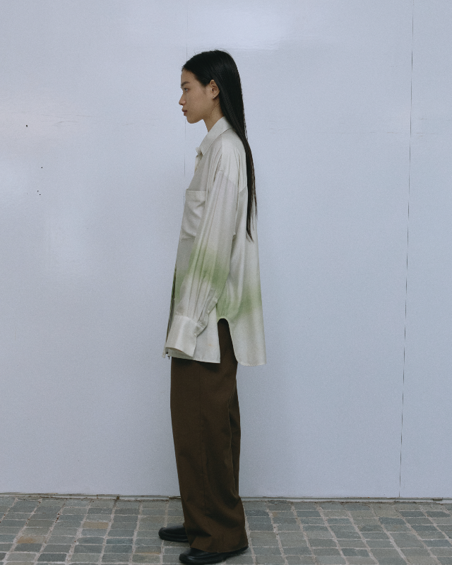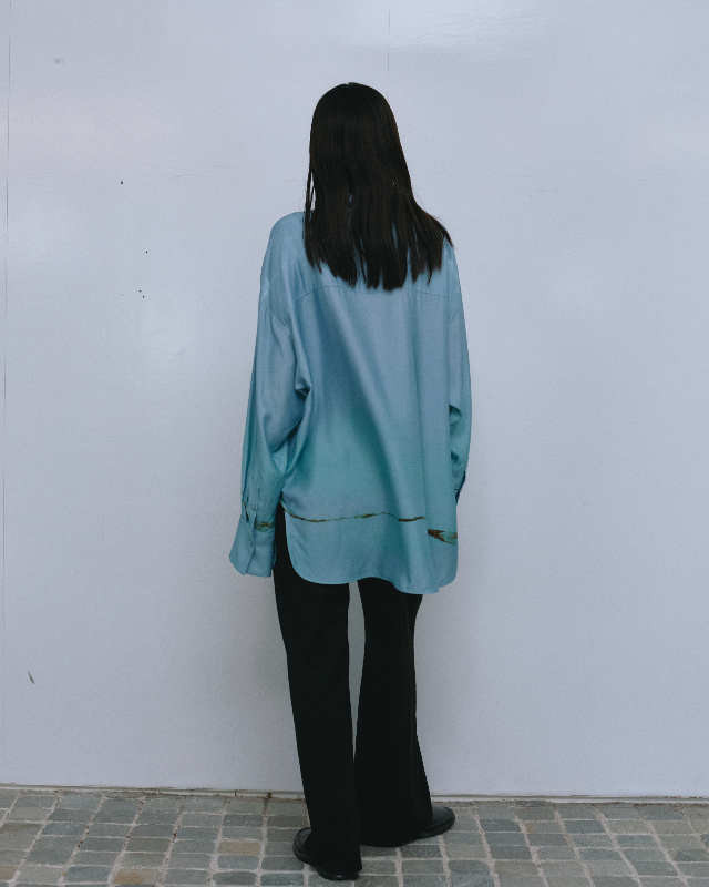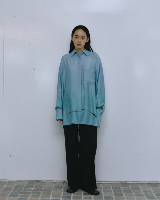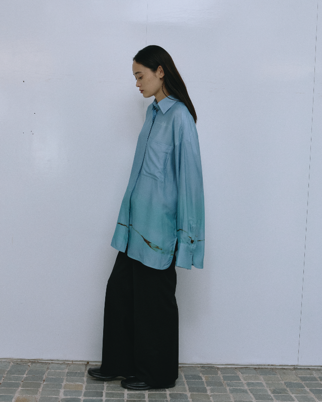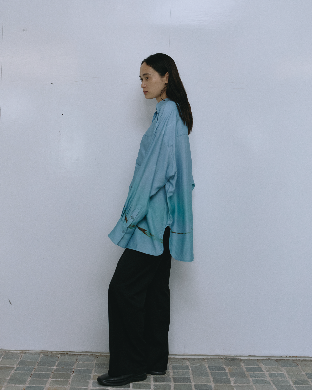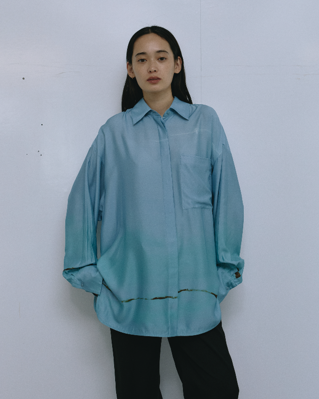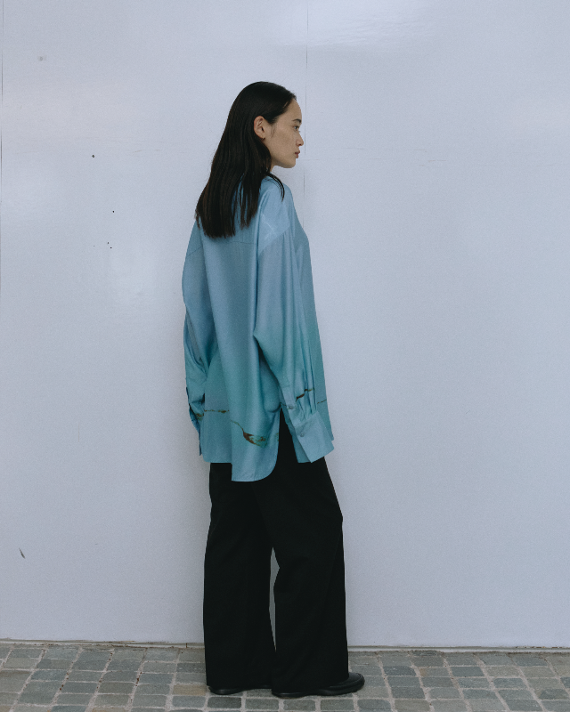 全面にアートをプリントしたシルクシャツは、アートを全面にプリントし、オーバーサイズでハンサムな印象でありながら、シルクならではの柔らかな落ち感で女性らしさを同時に引き立てます。
