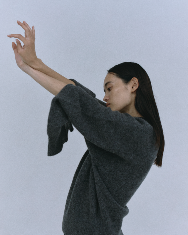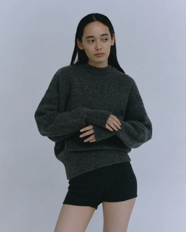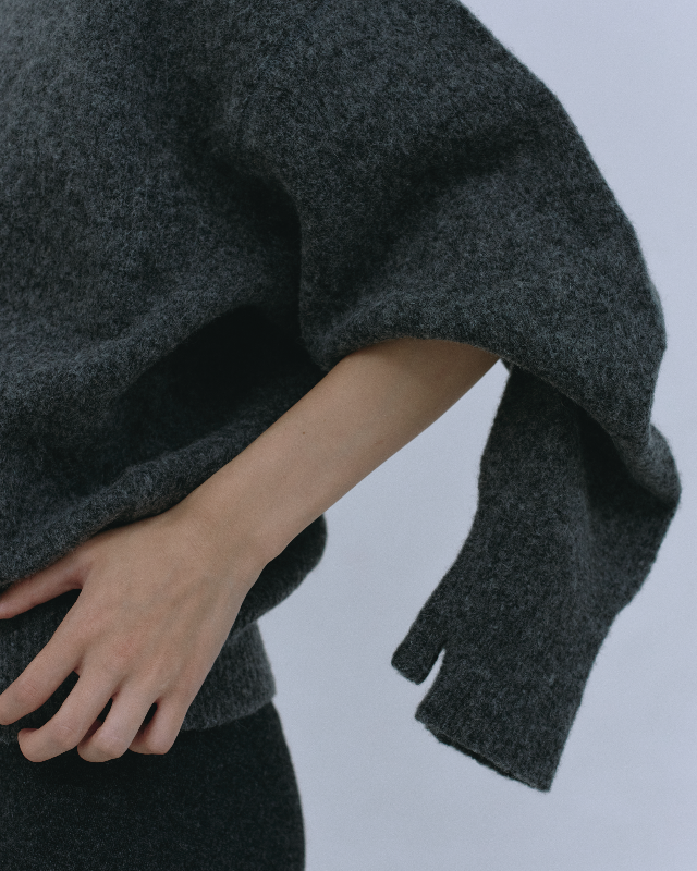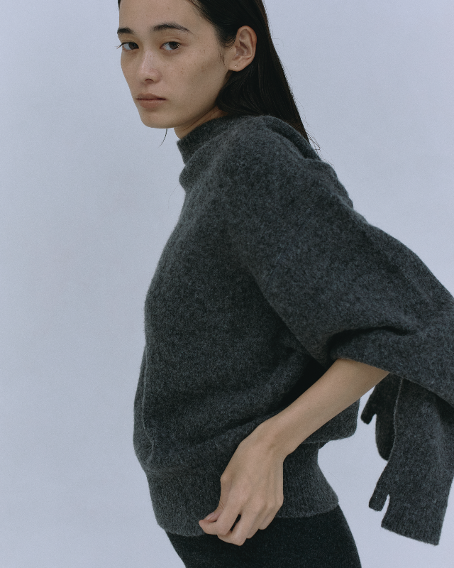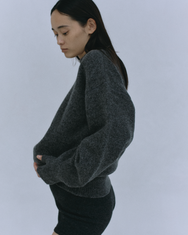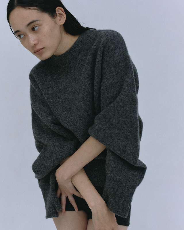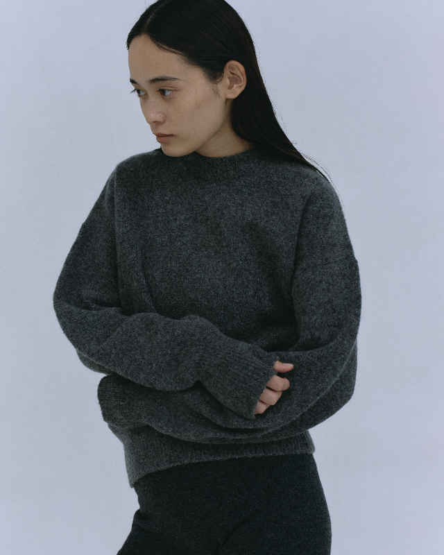 ほどよくゆるやかなシルエットながらもバランスのよい着丈で、様々なボトムスとの相性が良くすっきりと。冬のコートの中でも軽やかに重ねられます。