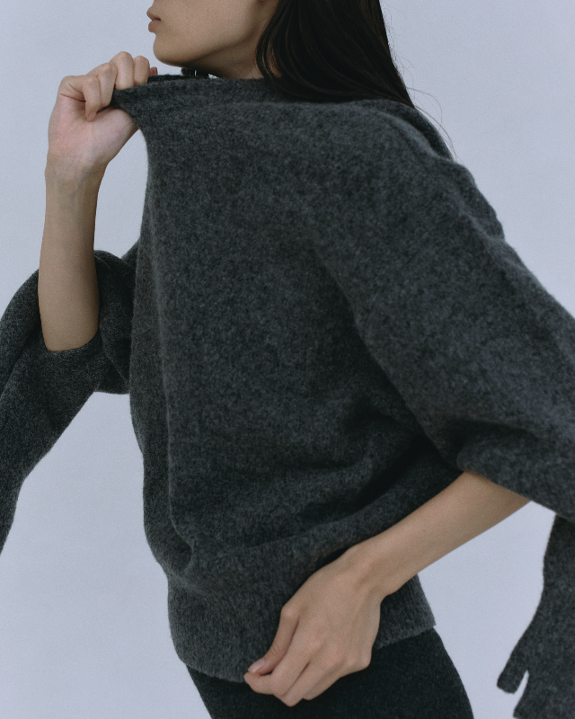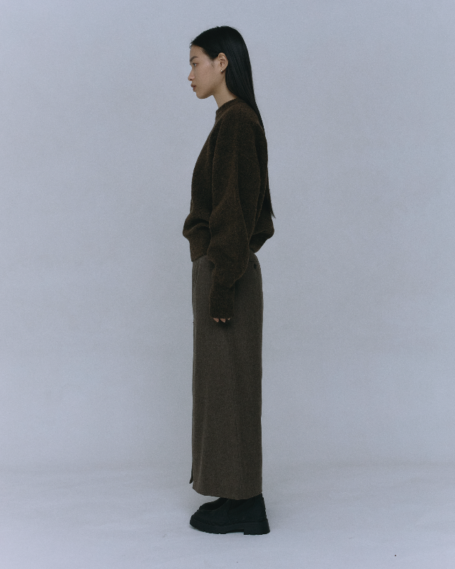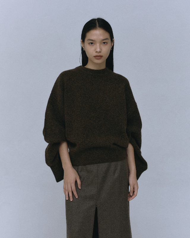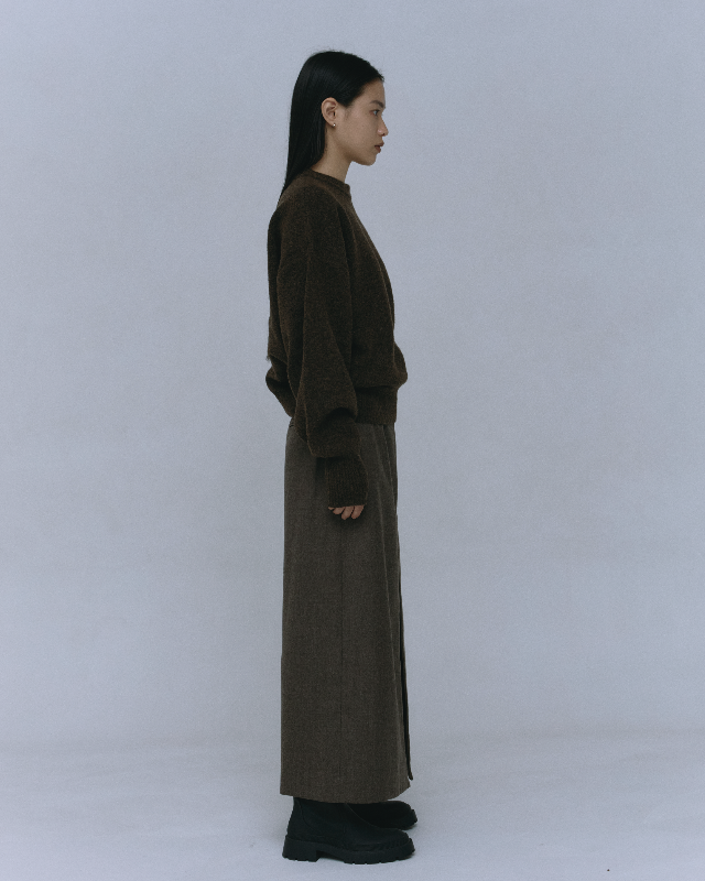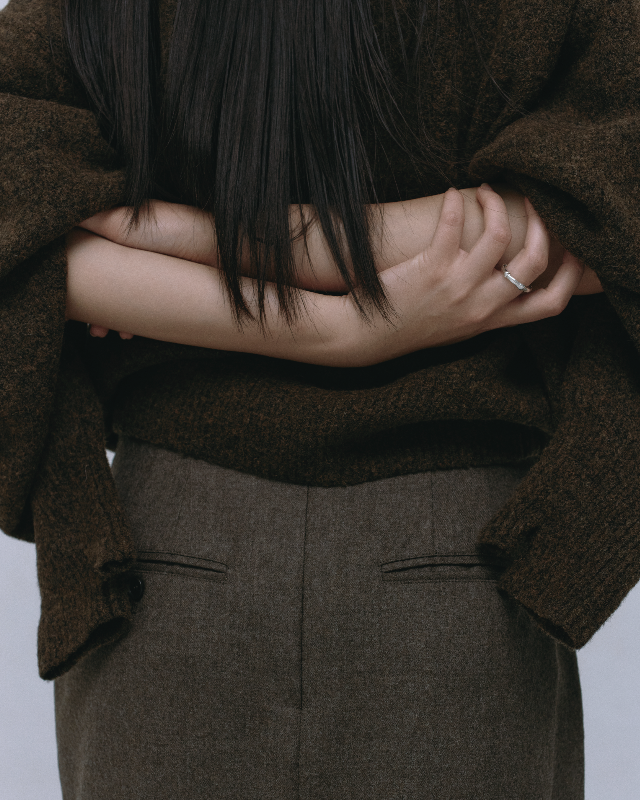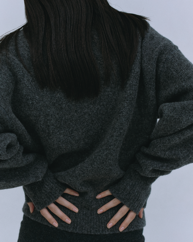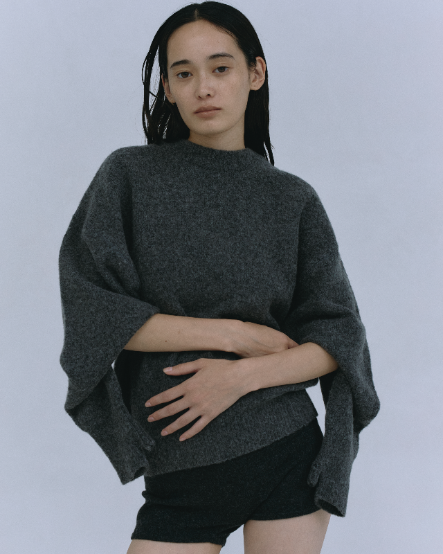 ほどよくゆるやかなシルエットながらもバランスのよい着丈で、様々なボトムスとの相性が良くすっきりと。冬のコートの中でも軽やかに重ねられます。