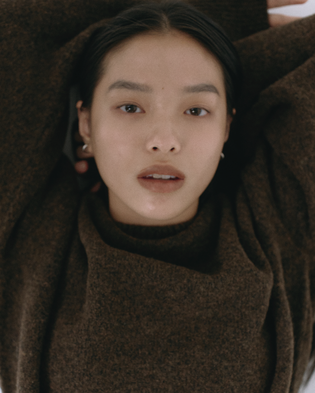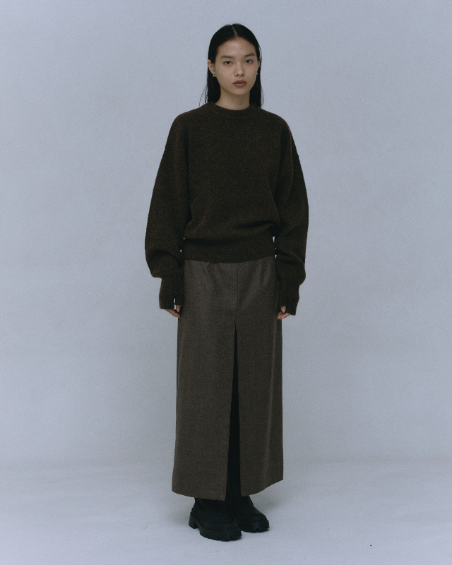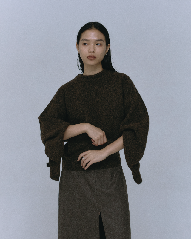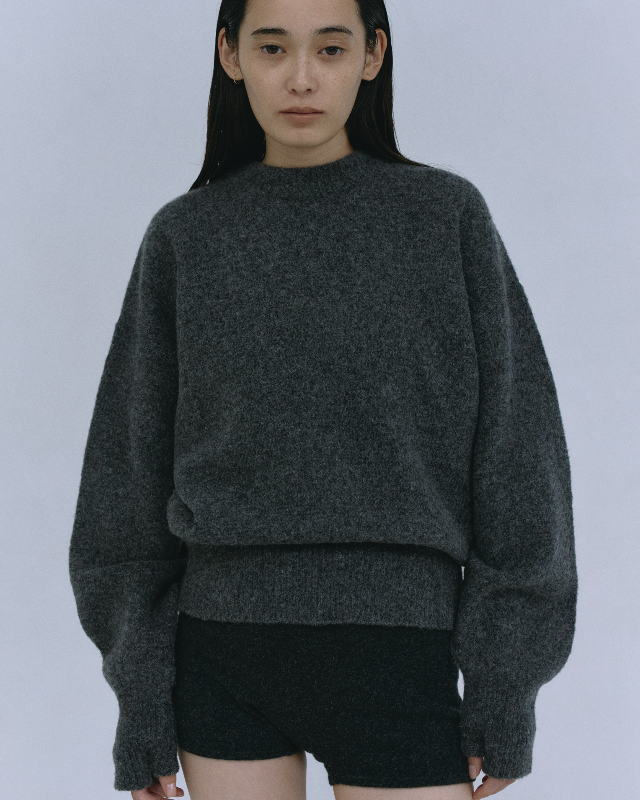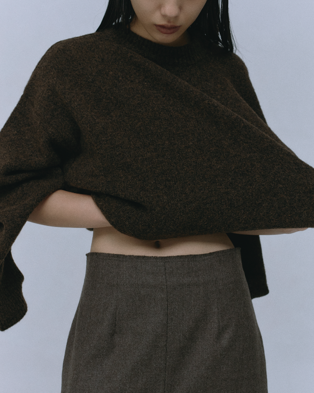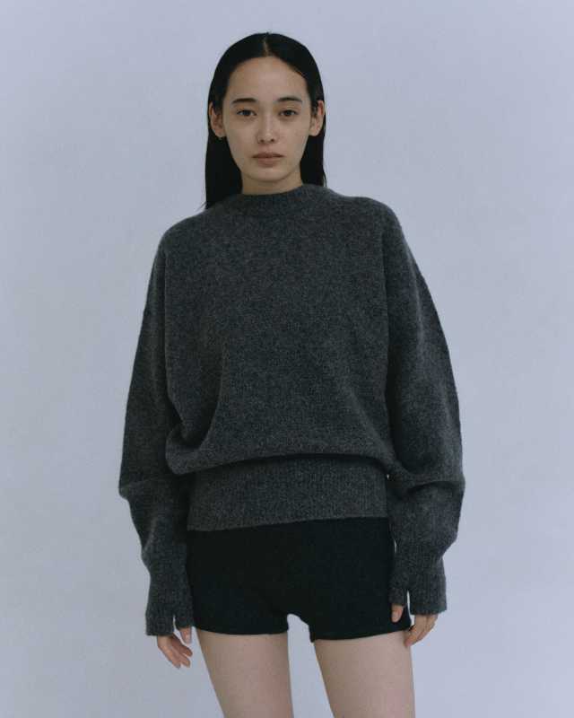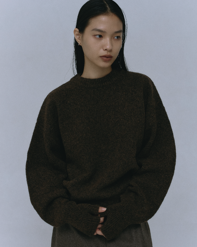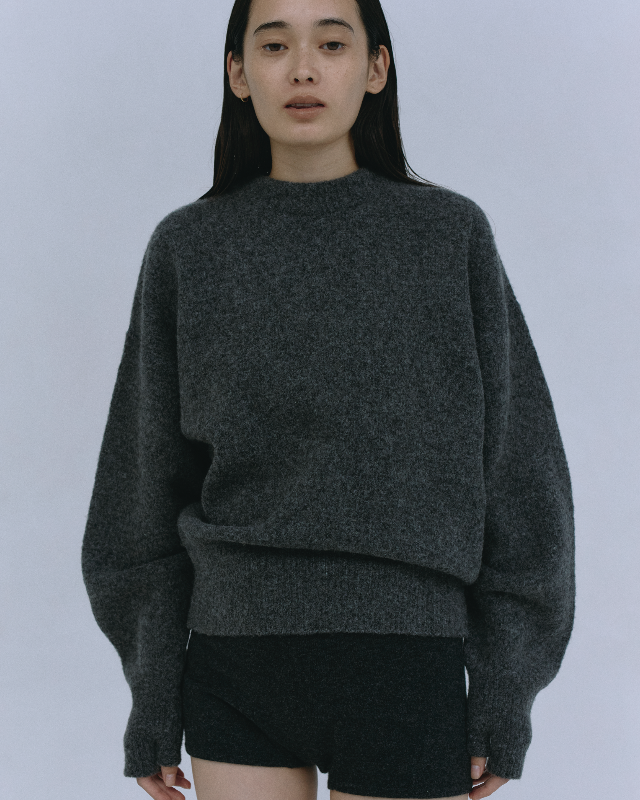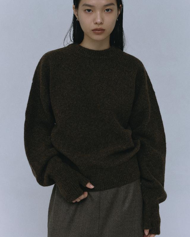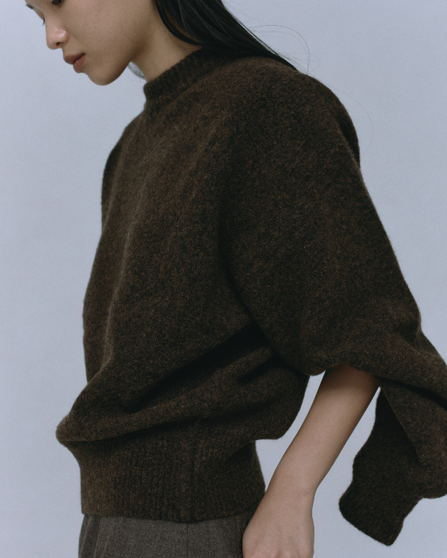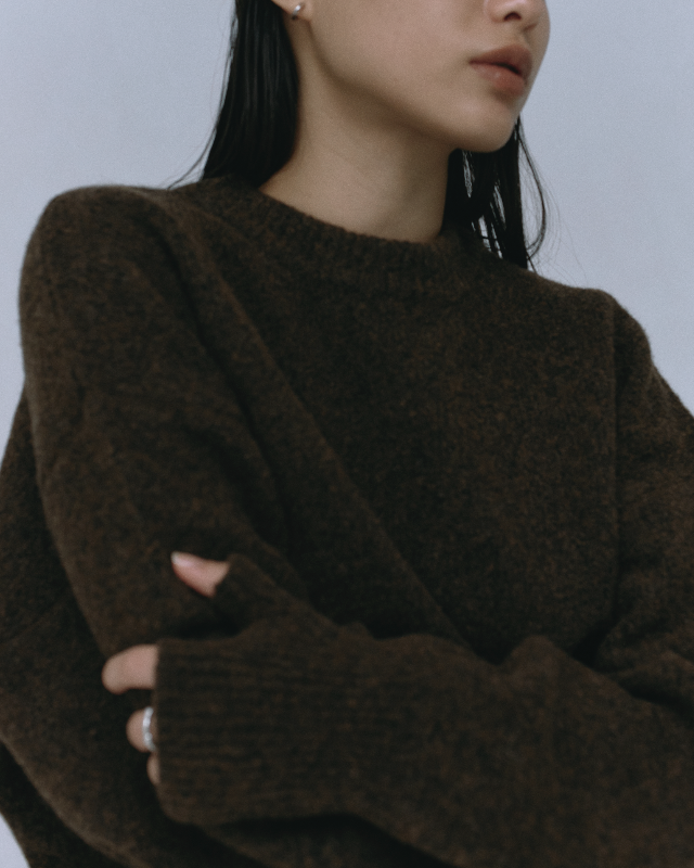 ウール混の杢調糸が生み出す、奥行きある色合いが魅力のニット。